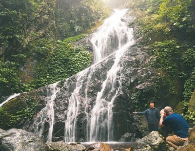 日前,游客在海南省热带雨林国家公园五指山片区拍照留念。